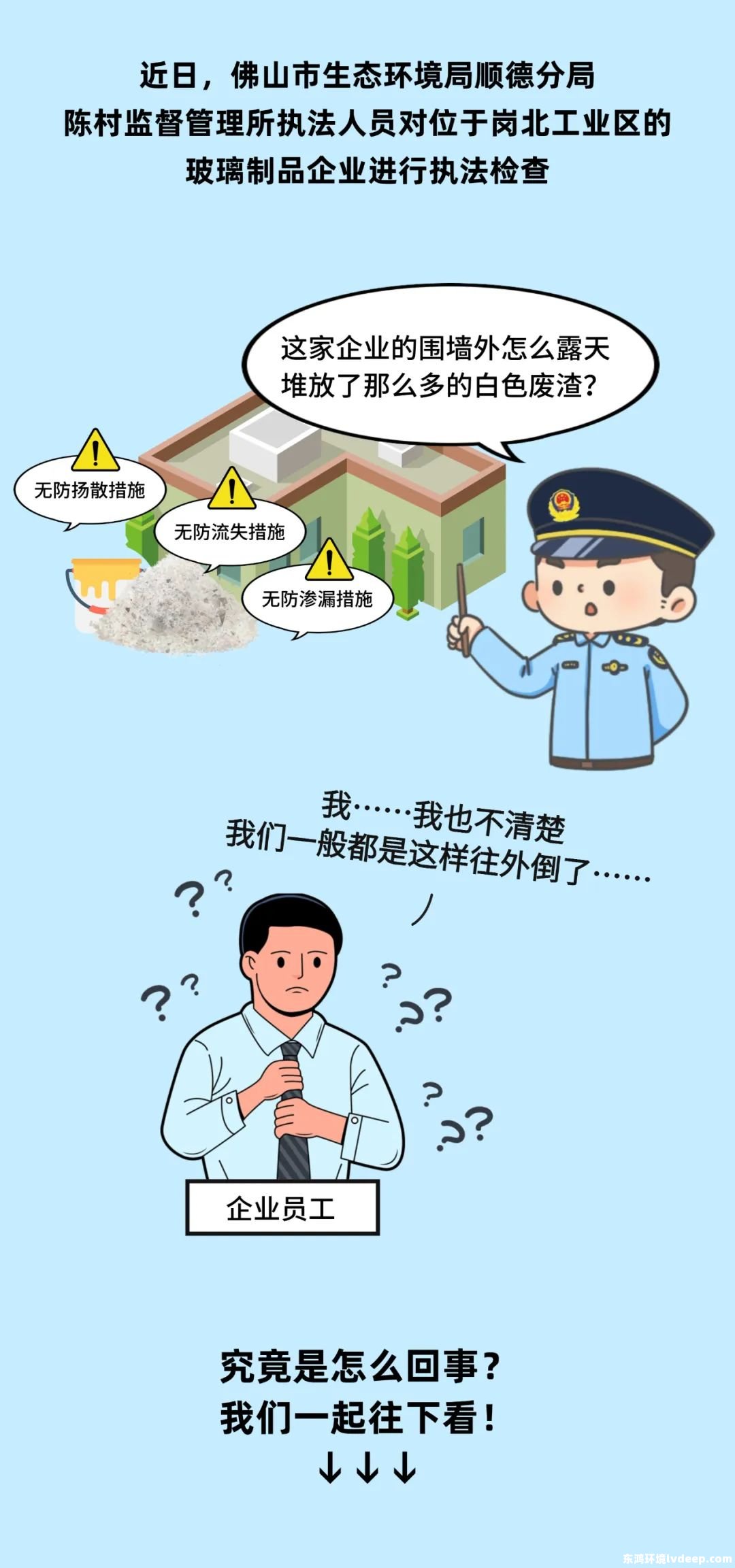 佛山順德一玻璃制品企業露天堆放白色廢渣?使不得!