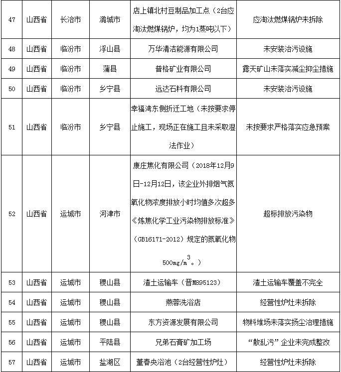 其中,河北省石家莊市元氏縣1家,保定涿州市1家;山西省臨汾市浮山縣1家、鄉寧縣1家;河南省安陽林州市3家,三門峽市盧氏縣1家;陜西省咸陽市渭城區1家,渭南市渭南高新技術產業開發區1家。