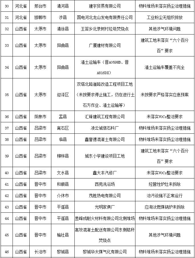 其中,河北省廊坊市安次區1家;山西省太原市陽曲縣2家,呂梁市柳林縣1家,運城市稷山縣1家;河南省洛陽市澗西區1家;陜西省西安市周至縣1家。